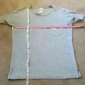 PINK VS BLING SILVER SEQUIN DOG T-SHIRT SIZE XS. THIS HAS BEEN GENTLY WORN AND IS CLEAN AND FREE OF STAINS AND TEARS. SILVER SEQUIN DOG ON LEFT POCKET. LARGE SILVER SEQUIN DOG ON THE BACK OUTLINED IN PINK SEQUINS. 100% COTTON MATERIAL. PLEASE SEE PHOTOS FOR MEASUREMENTS. NON SMOKING NON PET HOME.