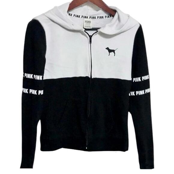 PINK VS Black White Full Zip Hoodie with pockets Size Small Vintage Y2k Teens