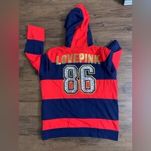 PINK VS STRIPE RED/ BLUE 86 BLING HOODIE L