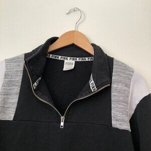 PINK VS VICTORIA'S SECRET Black White Gray Colorblock 1/4 Zip Logo Sweatshirt XS