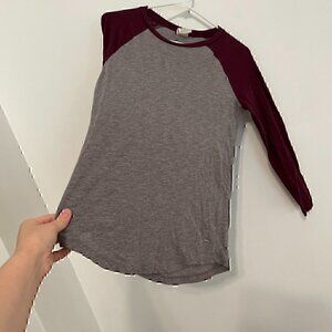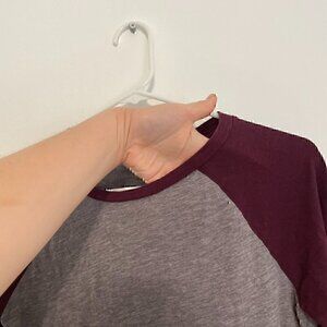 - heather gray marled gray / burgundy maroon wine red colorblock color block 3/4 sleeve / raglan sleeve baseball tee t-shirt top shirt