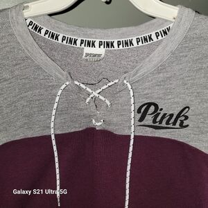 Lace up. PINK VS. Size cut out see measurements 21" pit to pit. 27' Long.