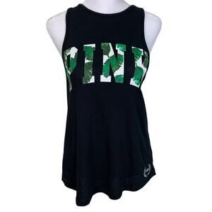 PINK Victoria's Secret High Neck Racer Back Palm Leaf Logo Tank Women Size XS
