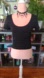 Stretchy tee, in all black. Short sleeves. Fitted. Low scoop neck. Cropped length. Large heart cut- out, in back. Black PINK Dog Logo embroidered, on the front side. Cotton & Elastane materials.