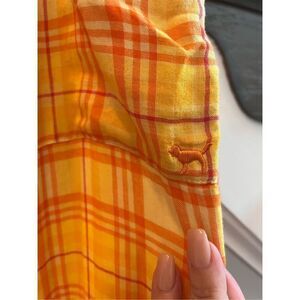 PINK VS Yellow & Orange Plaid Belted Flannel Convertible Pants sz L EUC