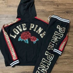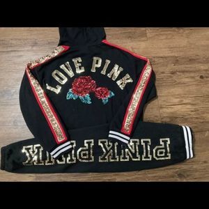 PINK VS 2017 FASHION SHOW BLING ROSES HOODIE AND JOGGERS SET M