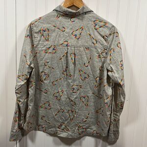 PINK VS gray long sleeve button up v-neck candy cane pajama top