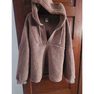 PINK Victoria Secret Brown Fleece Fluffy Half Zip Hoodie Size XXL. RO
