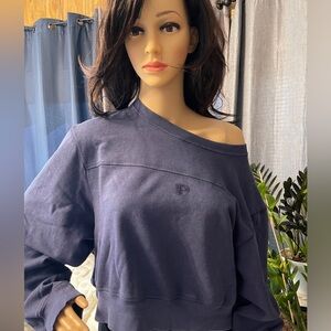 PINK Victoria Secret Cropped Ivy Fleece Yoke Seam Sweatshirt In Blue XL