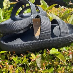 Brand New...Beautiful, Comfy and Lightweight Size Medium 7/8 True to size, Elevate your style with these sleek Pure Black slides from Pink Victoria's Secret. Perfect for any occasion, these sandals feature a comfortable rubber upper material and stylish straps. The slide style makes them easy to slip on and off, making them a convenient addition to your shoe collection.