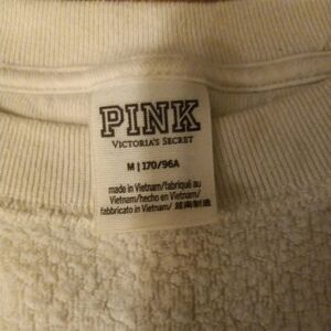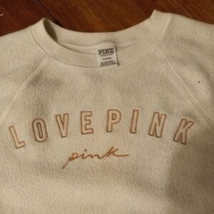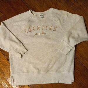 PINK Victoria Secret " LOVE PINK" Ivory Fleece Crop Sweatshirt M