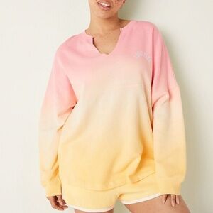 Tags: Cozy, Trendy, Loungewear, PINK, Victoria's Secret, Sweatshirt, Crewneck, Pullover, Ombre, Dip Dye, Gradient, Oversized, Small, Medium, Large, XL, V-Neck, Comfy, Comfortable, Casual, Everyday, Relaxed Fit, Athleisure, Sporty, Streetwear, On Trend, Must Have, Wardrobe Essential, Pink, Yellow, Pastel, Cute, Girly, Feminine, Boho, Indie, Grunge, Hipster, Y2K