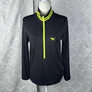 PINK Victoria Secret Ultimate Half Zip Pullover Black Neon Green Athletic Size M