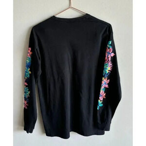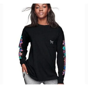 PINK Victoria Secret Womens Long Sleeve Pullover Floral Sweatshirt Black Sz XS/S