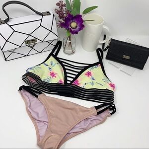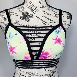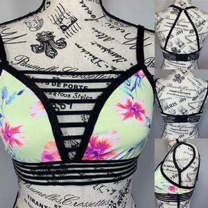 PINK Victoria Secret Yellow Floral Print Strappy Bikini Swim Top Size Medium
