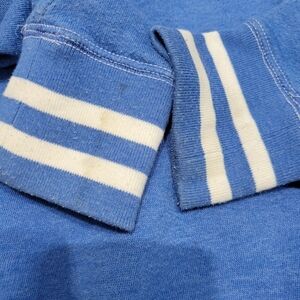 CONDITION: Good. There is staining noted and pictured on the cuffs ad well as a small stain on the front, also pictured above