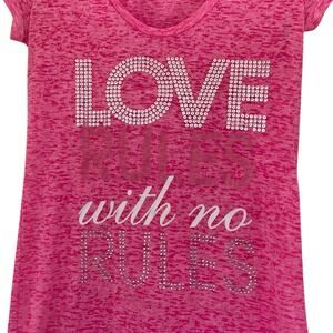 PINK Victoria's Secret 2011 Supermodel Essentials T-Shirt/Tee "Love Rules with No Rules" logo in pink