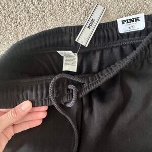 2025 limited release PINK cropped Ivy fleece sweatpants. Loose fit style with 29 inch inseam. Skeleton hand bling graphic on butt. Drawstring waist. Fully made of pink rhinestones. Very sparkly! New with tags. Size small.