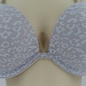 PINK Victorias Secret 34D Bra Wear Everywhere Super Push Up Gray Leopard Mesh