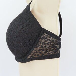 PINK Victorias Secret 34D Wear Everywhere T Shirt Lined Bra Black Leopard Mesh