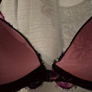 PINK Victoria's Secret 34DD Black Pink Floral Racerback Front Close Bra