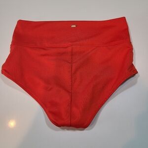 PINK Victoria's Secret Active High Waist Shortie Bikini Bottom in Size Medium. This is a listing for the bottom only. The color is orange (with a dash of red) in color. Vibrant bikini bottom by PINK. Ideal for beach outings.