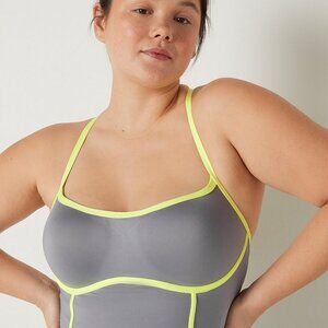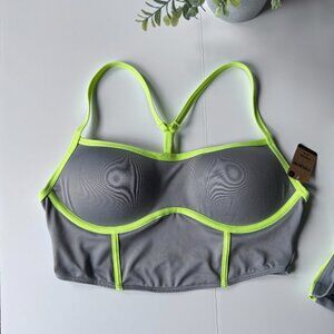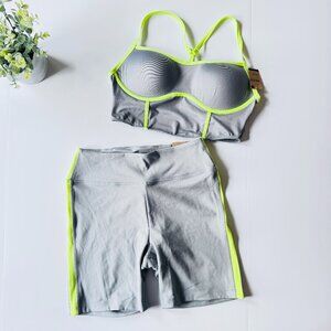 PINK Victoria's Secret Activewear Set Sports Bra and Bike Shorts Gray Lime Green