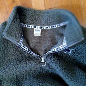 PINK Victoria's Secret Army / Olive Green Cuddly Sherpa 1/4-Zip Top