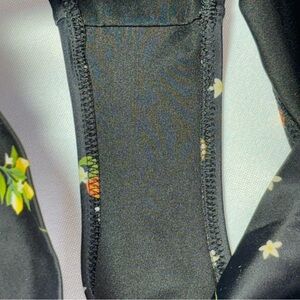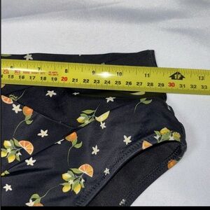 The print features small lemons, oranges, and white star shapes scattered across the black fabric.