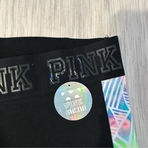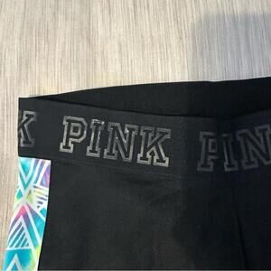 PINK Victoria's Secret Black Cropped Leggings with Colorful Side