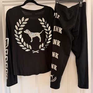 PINK Victoria's Secret Black Floral Leggings and Matching Sweatshirt