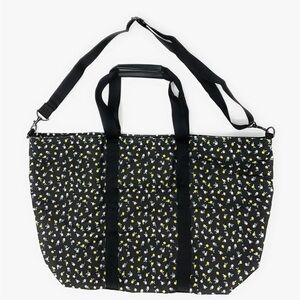 Large tote bag black with white and yellow flowers Shoulder straps, Removable & adjustable long strap Top zip clousure, interior zip pocket, exterior front pocket Great for gym, travel, beach