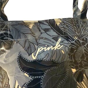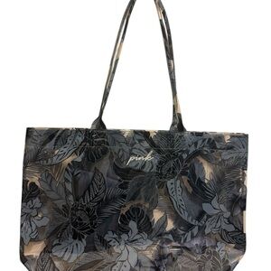 PINK Victoria's Secret Black Floral Tote Bag with extra zipper pouch