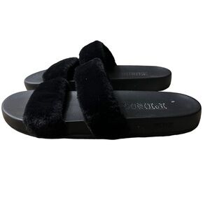 PINK Victoria’s Secret Black Fuzzy Slides Slippers Size M (38/39 or 8-9 US)