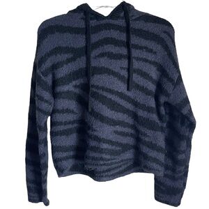 PINK Victoria's Secret Black & Gray Tiger Striped Fuzzy Cropped Sweater Hoodie
