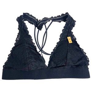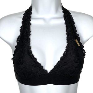 PINK Victoria's Secret Black Lace Crisscross Strap Halter Bralette NWT