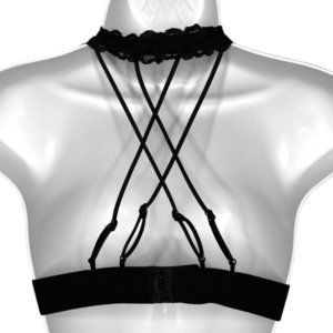 PINK Victoria's Secret Black Lace Crisscross Strap Halter Bralette