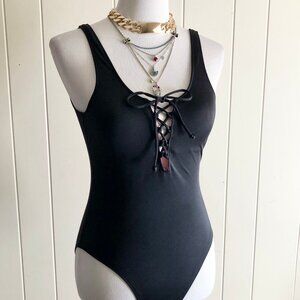PINK Victoria's Secret Black Lace Up Swimsuit Maillot Size S