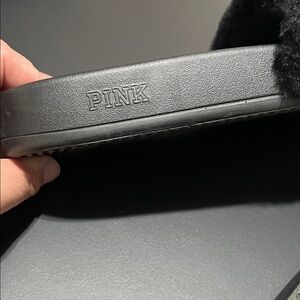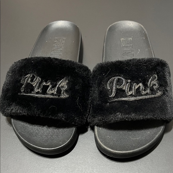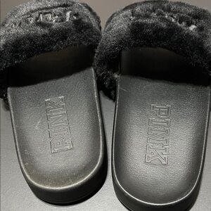 PINK Victoria's Secret Black Plush Slides