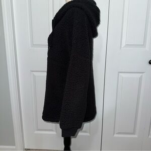 PINK Victoria's Secret Black Sherpa Hoodie pockets Small Oversized