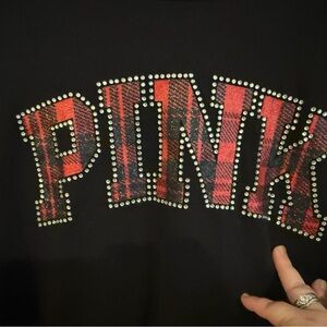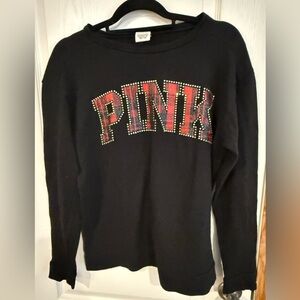 Chic black sweater featuring a studded PINK logo. Ideal for casual wear. Size x small. Not missing any of the studs. No stains or tears.