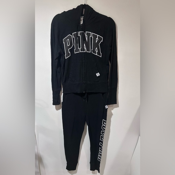 Victoria Secret Pink sweatsuit black zipper hoodie size M with appropriate measurements L-23” & Bust 20”