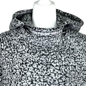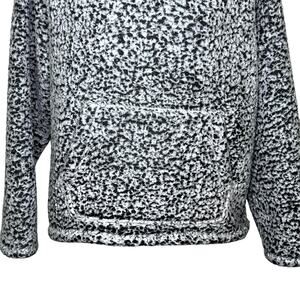 PINK Victoria's Secret Black White Fluffy Popcorn Pullover Hoodie, super warm! Kangaroo pocket in front, bungee cord around hood (bungee at waist is missing). Size Medium. Measurements taken laying flat: