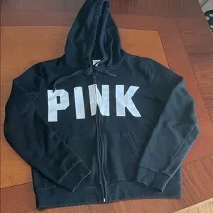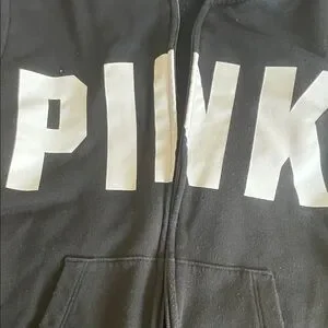 PINK Victoria's Secret Black Zip Front Hoodie with White Logo