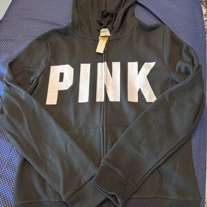 Stylish black zip-up with bold white PINK lettering. Ideal for everyday comfort. Brand new with tags.