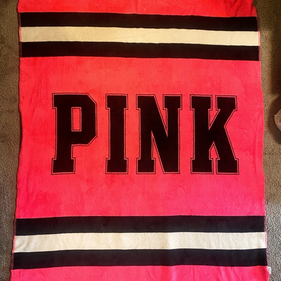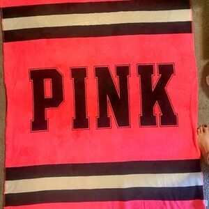 PINK Victoria's Secret Black and Bright Pink Blanket