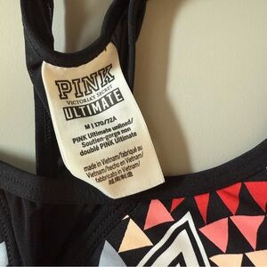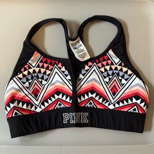 PINK Victoria's Secret Black and Red Sports Bra Geometric Design Size M