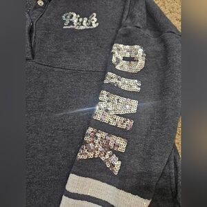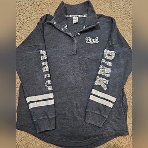 PINK Victoria's Secret Bling Oversized Sequin Half Snap Sweatshirt
