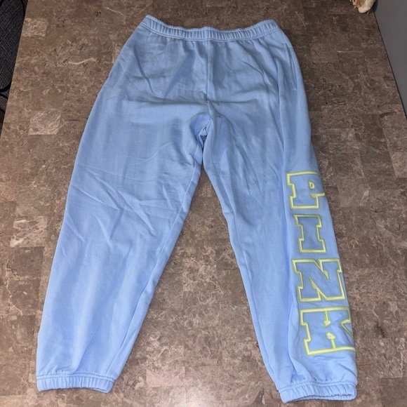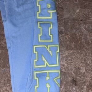 Soft blue sweatpants with iconic PINK branding. Perfect for lounging.