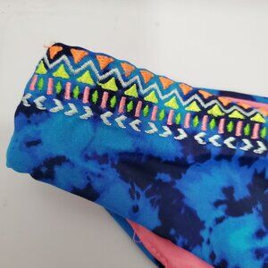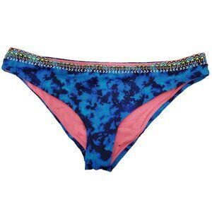 PINK Victoria's Secret Blue Tie Dye Boho Embroidered Swim Bikini Bottoms Sz M